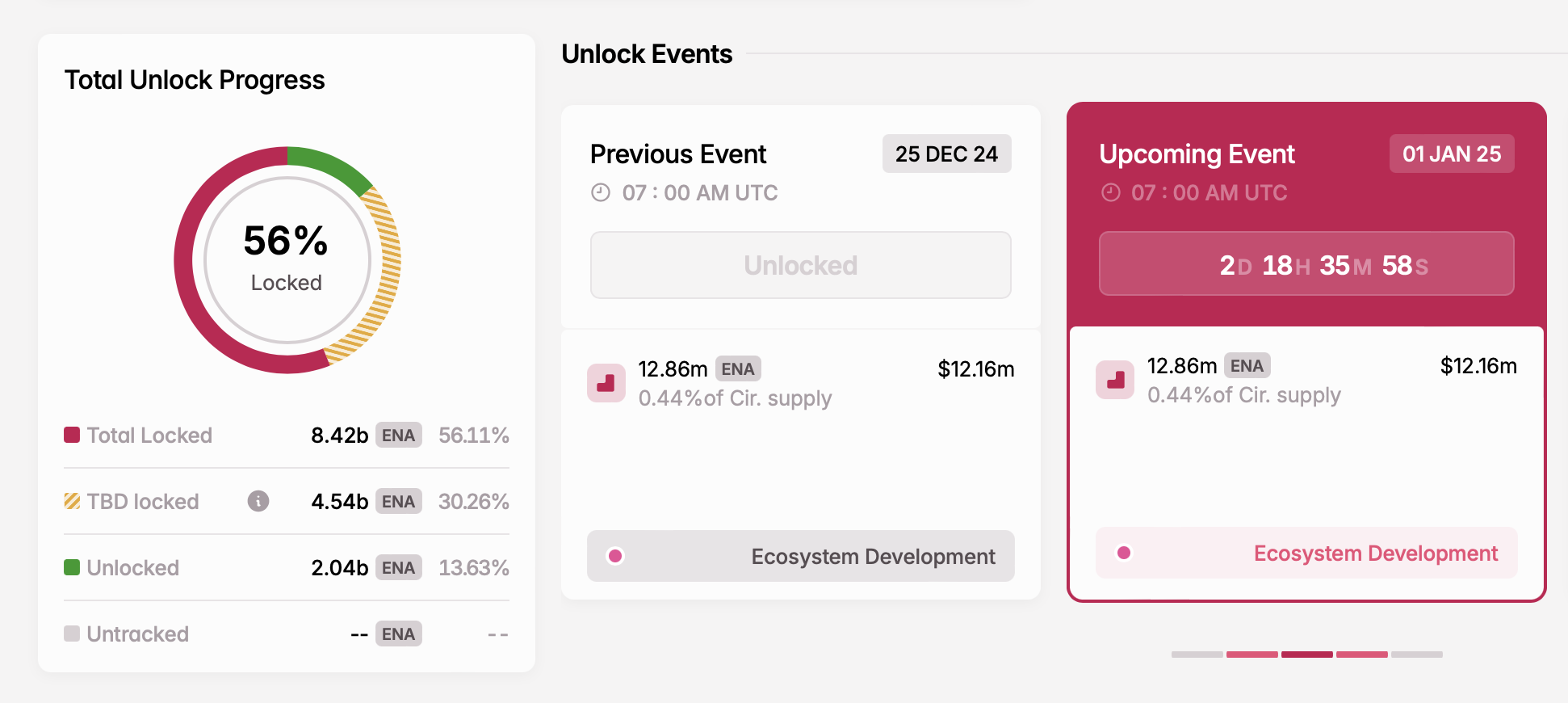- Antal upplåsta tokens: 12,86 miljoner ENA