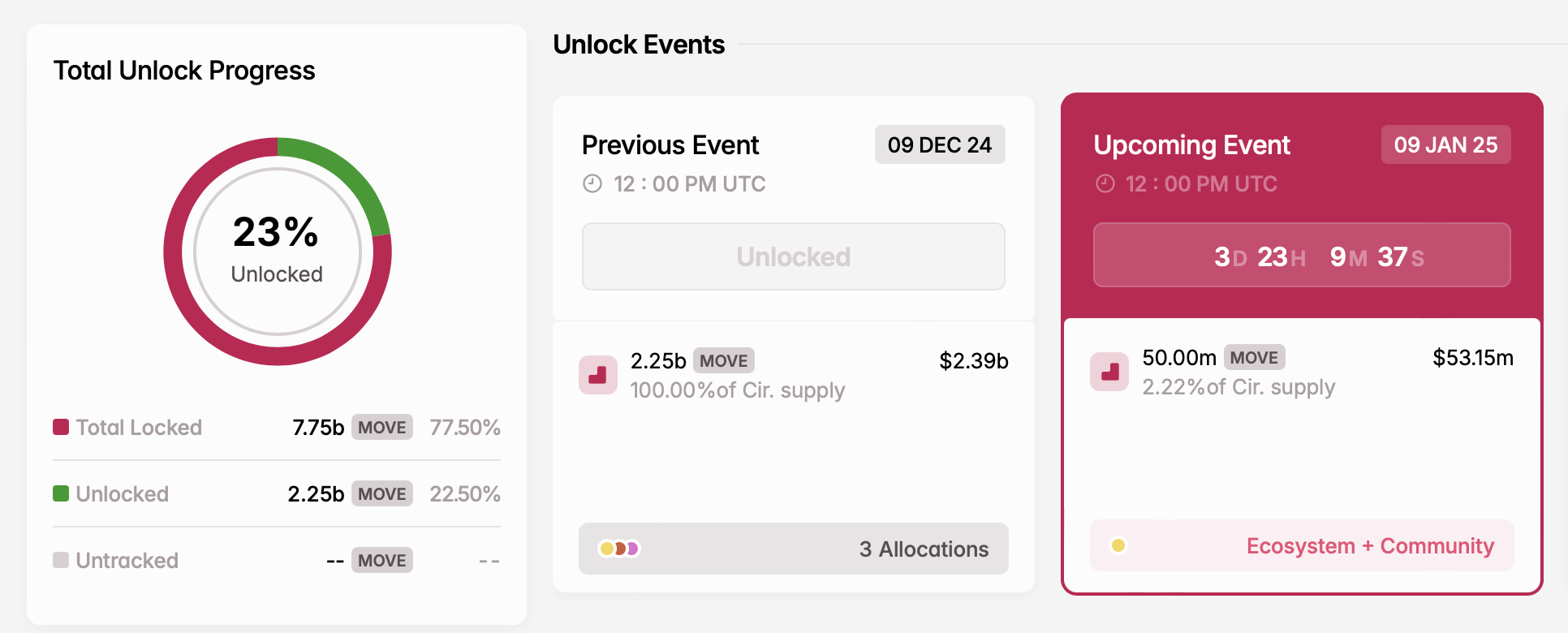 Den 9 januari kommer Movement att släppa 50 miljoner MOVE-tokens. Projektet kommer att använda dessa tokens för att växa ekosystemet och stödja gemenskapen.