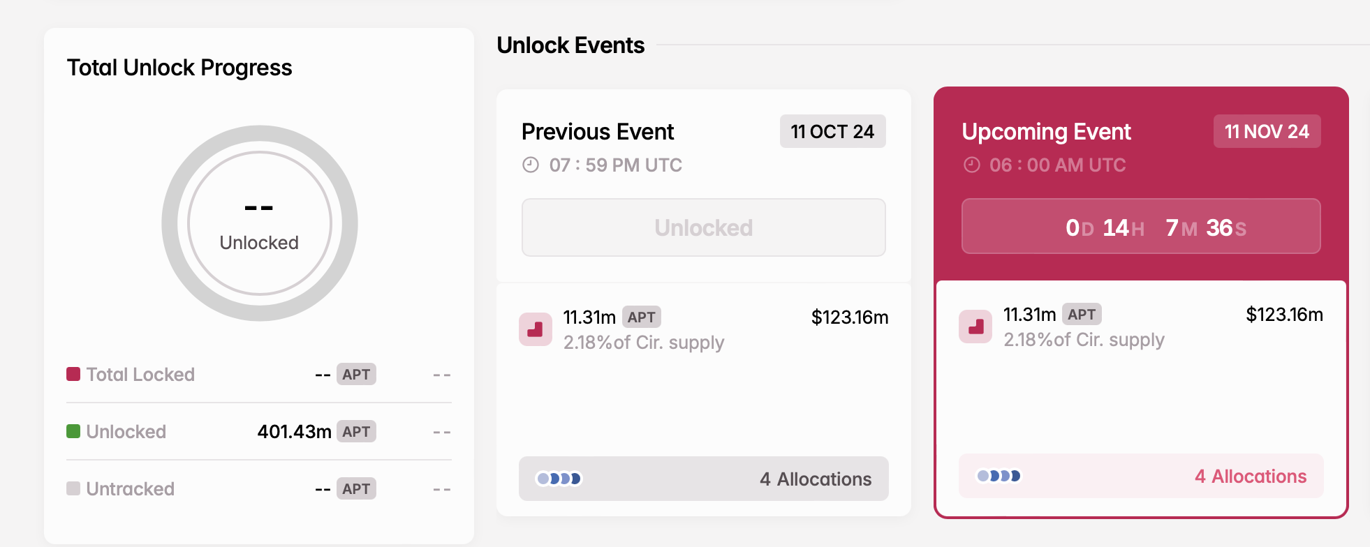 - Antal upplåsta tokens: 11,31 miljoner APT