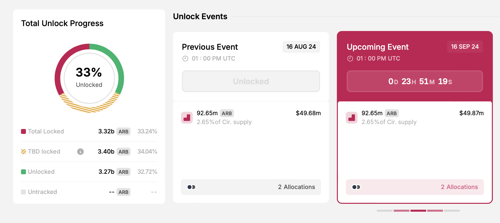 - Antal tokens som låses upp: 92,65 miljoner ARB