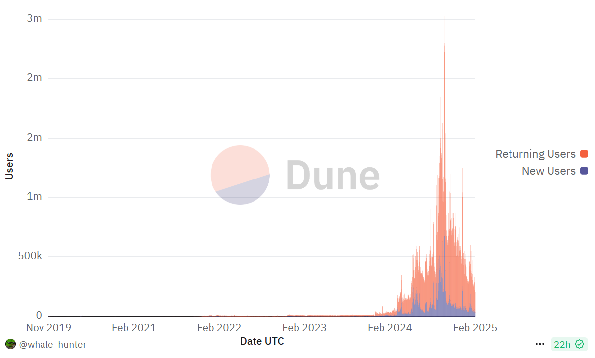 Denna nedgång återspeglas också i det alarmerande fallet av nya dagliga användare. Enligt Dune-data nådde TON en topp på 724 465 den 30 september, men den 5 februari hade antalet sjunkit till bara 33 852.
