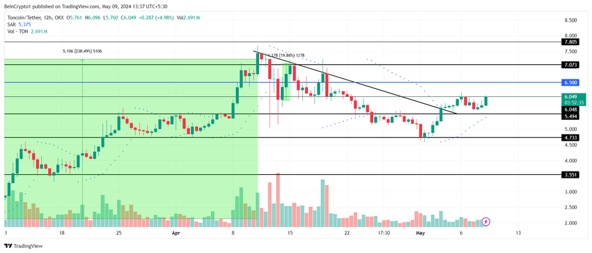 Men om TON-innehavare väljer att inte sälja och HODL istället kan altcoin bryta mot $ 6.5. Detta skulle ogiltigförklara den baisseartade avhandlingen, vilket gör det möjligt för Toncoins pris att notera ytterligare vinster.