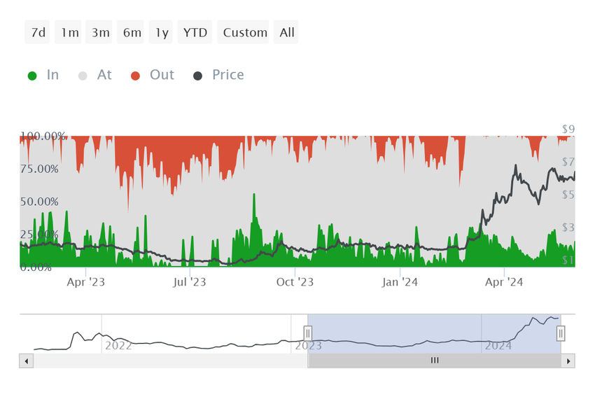 En breakout kan utlösa hausse över hela marknaden och driva priset uppåt. För närvarande markerar $ 7.6 all-time high, och om optimismen förblir intakt kan Toncoins pris bilda en ny ATH över $ 7.6.