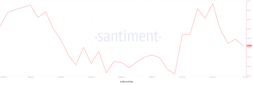 Vidare bekräftade TON: s fallande Relative Strength Index (RSI), som observerades på kedjan, ökningen av försäljningstrycket. Vid pressläggning tenderade denna indikator nedåt och returnerade ett värde på 58.