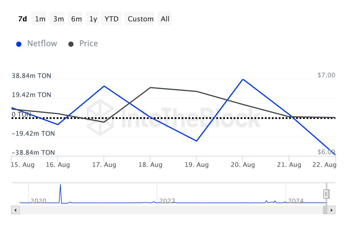 Dessutom har nettoflödet för TON:s stora innehavare ökat med 431% under den senaste veckan, vilket bekräftar ökat köptryck från valar.