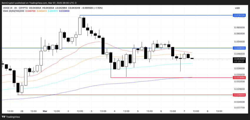 Under den senaste veckan har $DOGEAI stigit nästan 16% fram till torsdag, även om det började se en korrigering på fredag. Token håller för närvarande stöd runt 0,040 USD, men om denna nivå misslyckas kan en nedgång mot 0,026 USD följa.