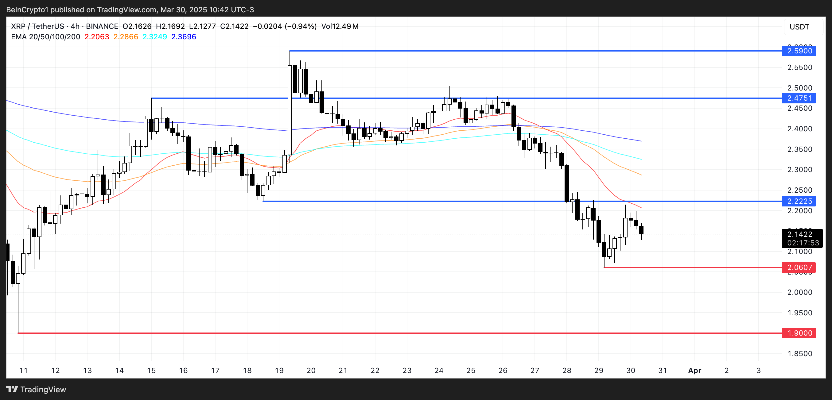 Om nedåttrenden fortsätter kan XRP återbesöka stödet vid 2,06 USD. Ett brott under den nivån kan dra ner den ytterligare till 1,90 USD.