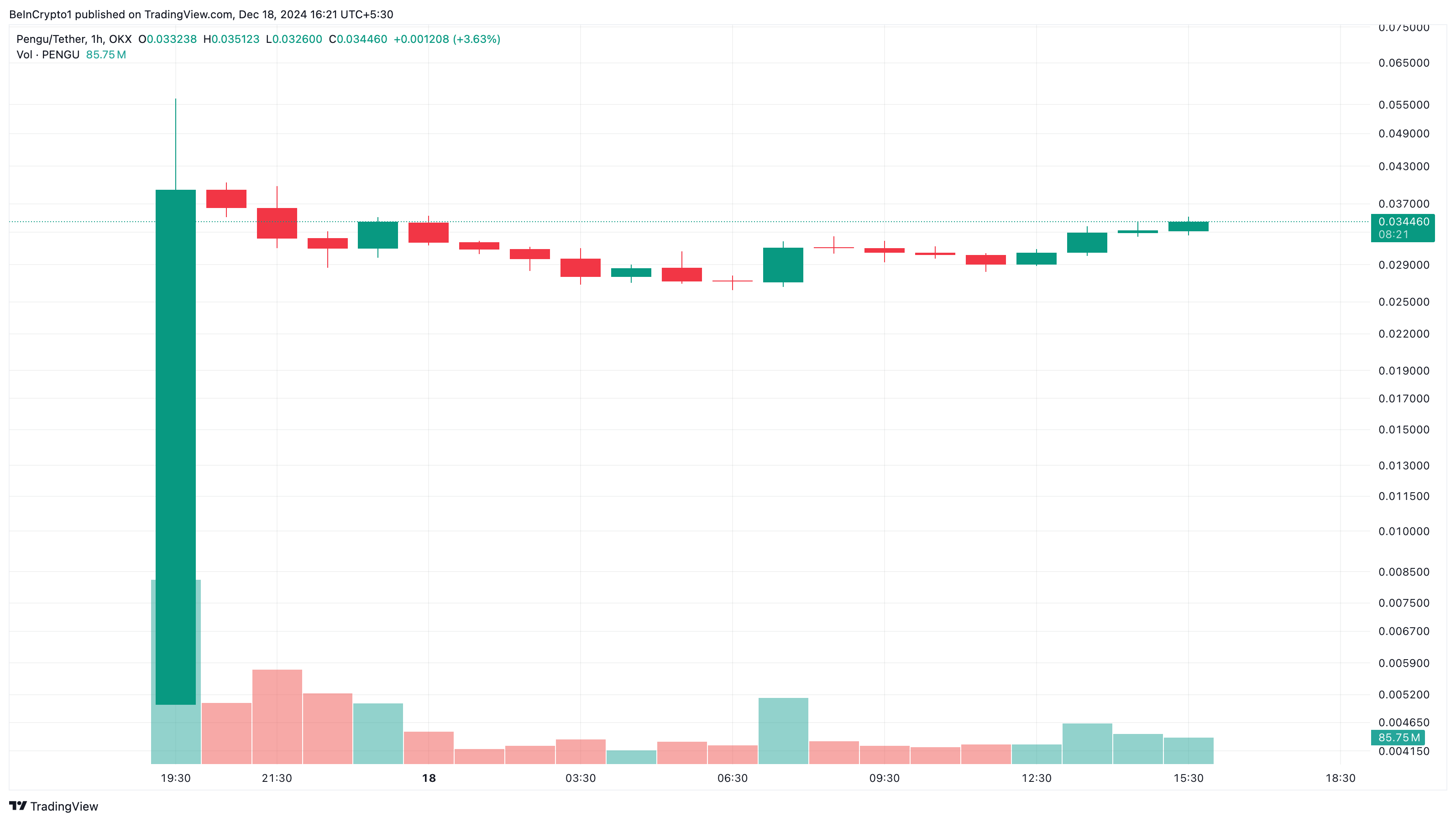 PENGU, tokenen lanserad av NFT-kollektionen Pudgy Penguins, toppar listan över altcoins som trendar idag, främst på grund av sin lansering igår och airdrop. Som BeInCrypto rapporterade tidigare, orsakade PENGU airdrop en märkbar nedgång i altcoinens värde.