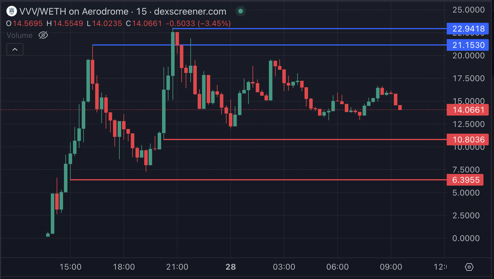 VVV Prisanalys. Källa: Dexscreener.