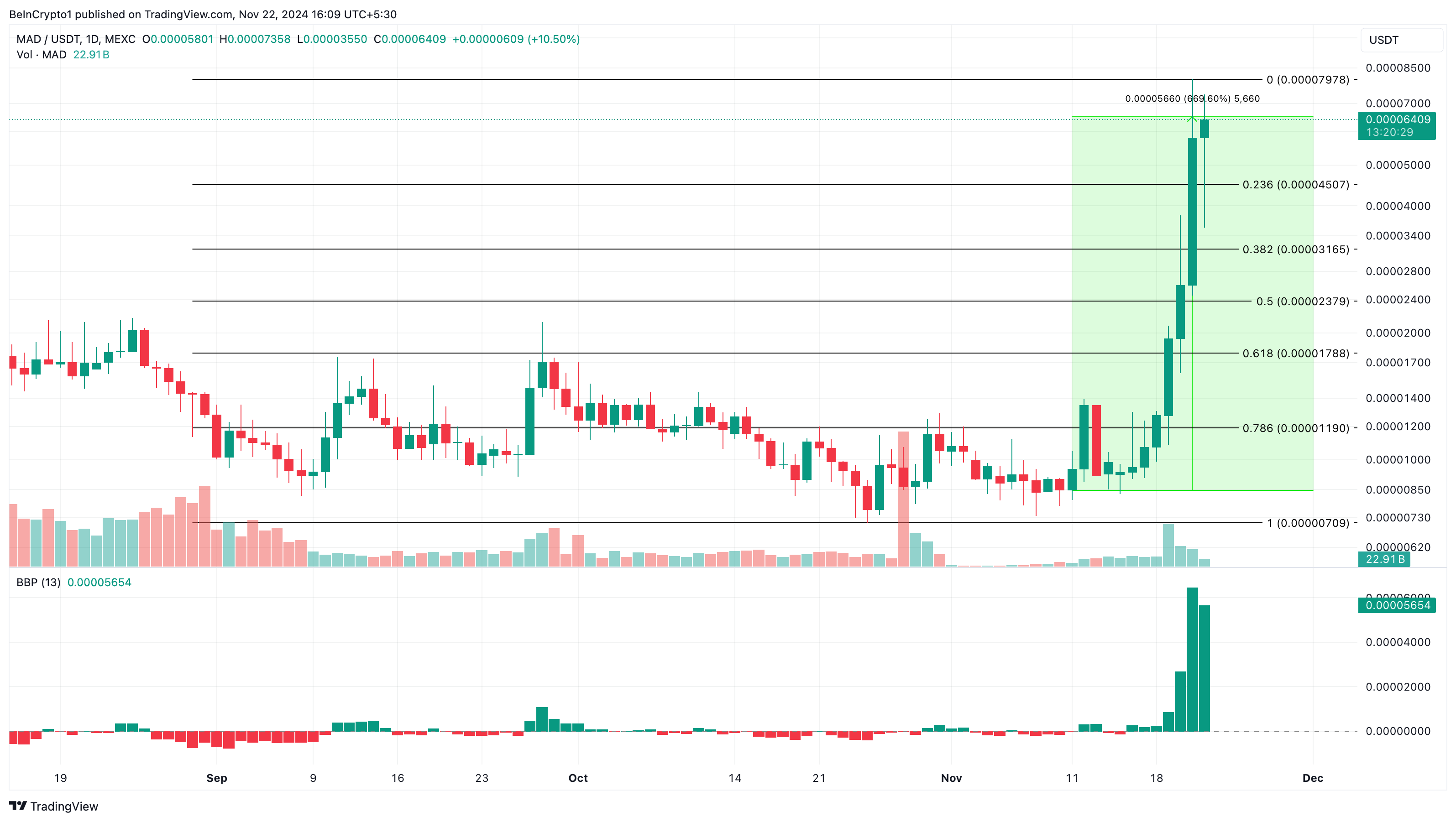 En annan kryptovaluta bland de altcoins som trendar idag är MAD, en memecoin byggd på Solana-blockkedjan. MAD trendar eftersom dess värde har ökat med 85 % de senaste 24 timmarna och över 600 % de senaste sju dagarna.