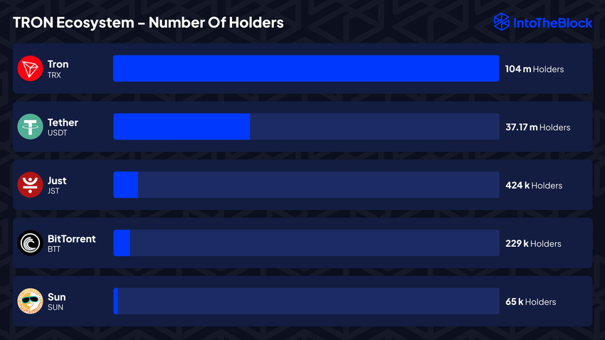 Dessutom är Tron fortfarande ett av de största nätverken i branschen. Juan Pellicer, seniorforskare på InToTheBlock, uppger att Tron-nätverket för närvarande har över 104 miljoner innehavaradresser.