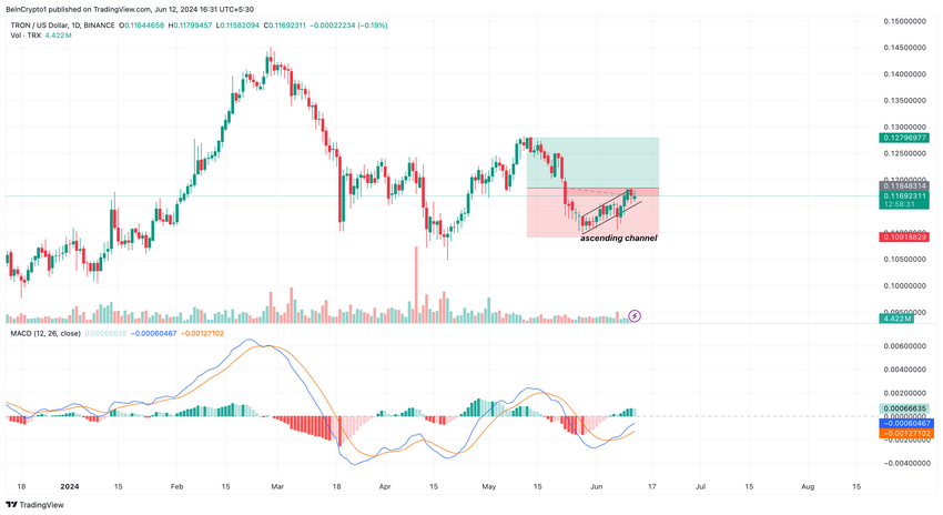 Samtidigt har Trons pris rört sig uppåt sedan dess och bildat en stigande kanal från den 28 maj till den 11 juni.