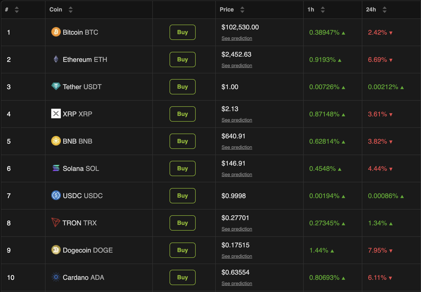 Sju av de tio största mynten har minskat i värde det senaste dygnet. Musks favorit, Dogecoin (DOGE), såg den största nedgången på 7,9 %, följt av Ethereums (ETH) nedgång på 6,6 %.
