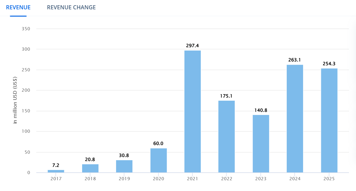 Enligt Statista kommer antalet användare på landets kryptomarknad att nå 3,78 miljoner användare år 2025. Därmed förväntas intäkterna förbli höga i år.