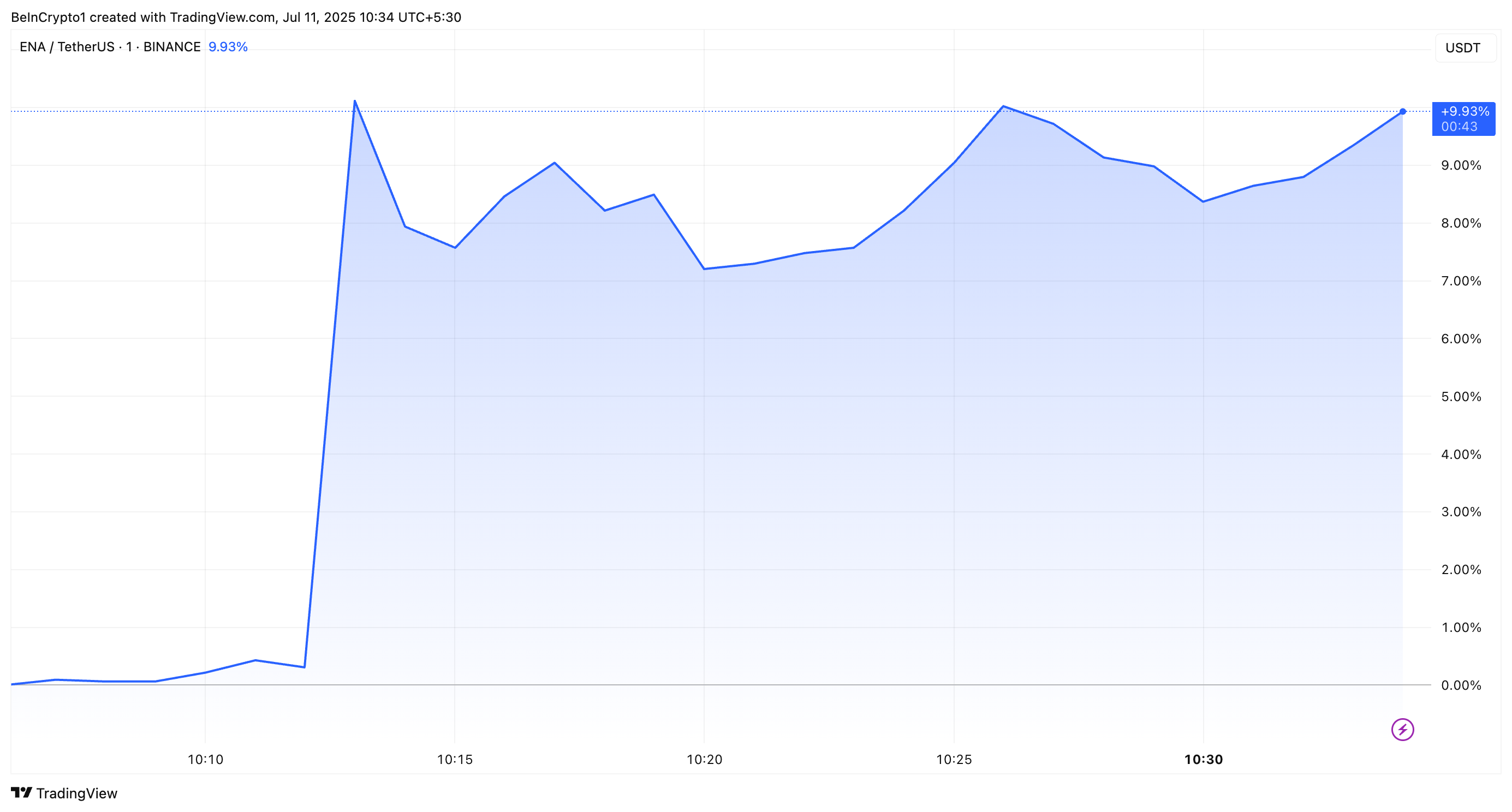 Marknadsdata visade att ENA steg från cirka 0,327 USD till 0,390 USD, vilket motsvarar en ökning på 19,27 %. Den tappade några av dessa vinster och handlades till 0,357 USD vid skrivande stund. Ändå var den upp 9,9 %.