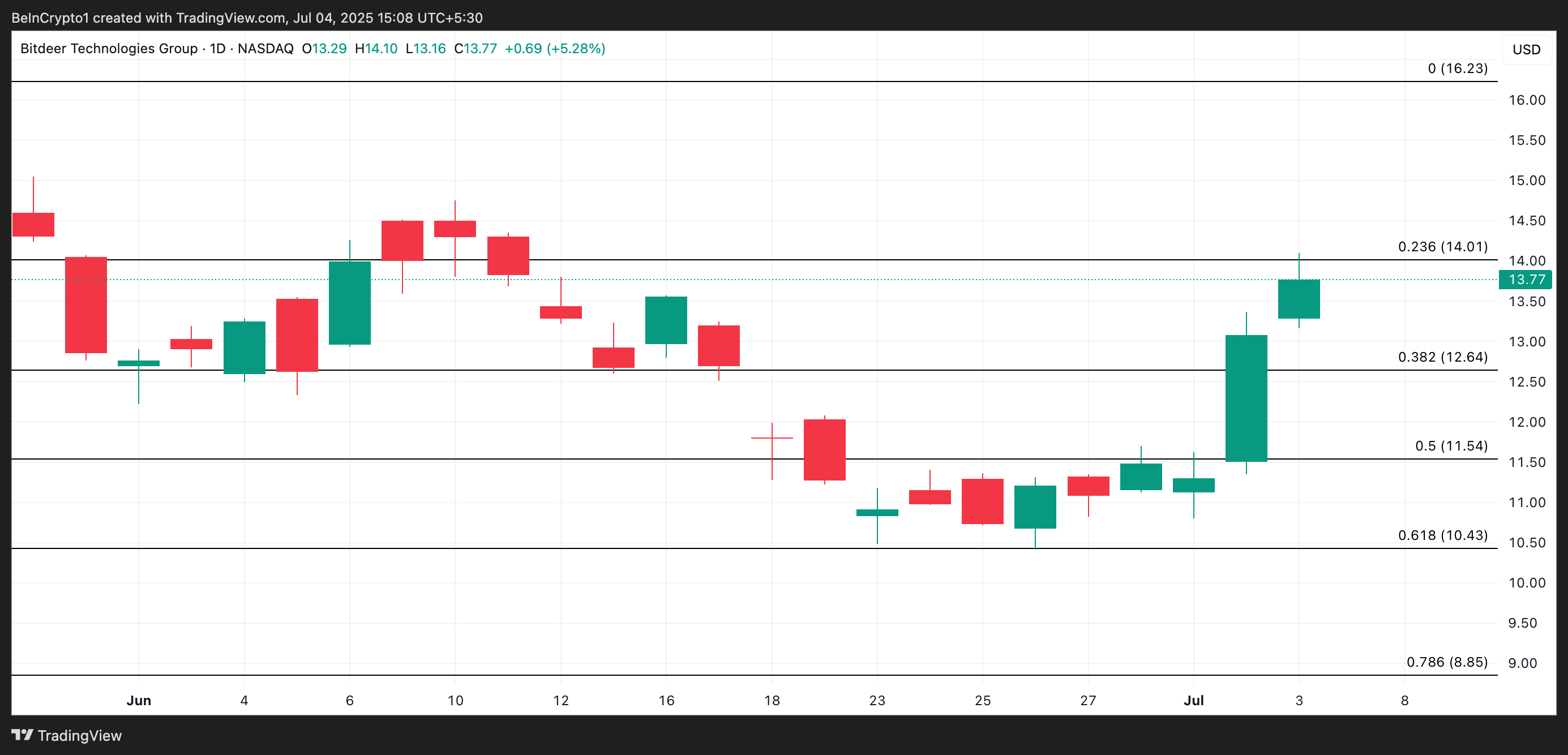 Under torsdagens handelssession steg BTDR med 6 % och stängde på 13,77 USD. Om den positiva trenden fortsätter när marknaden öppnar idag kan aktiekursen bryta över 14,01 USD.