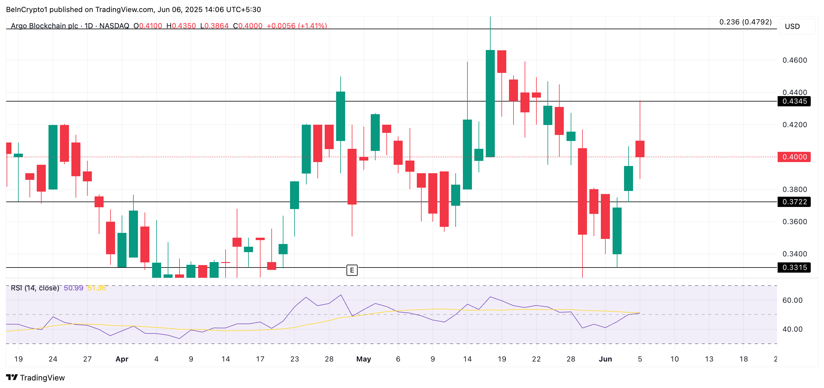 I detta fall indikerar RSI på 50,99 växande efterfrågan på Argo Blockchains aktie, i linje med dagens 6 % prisökning.