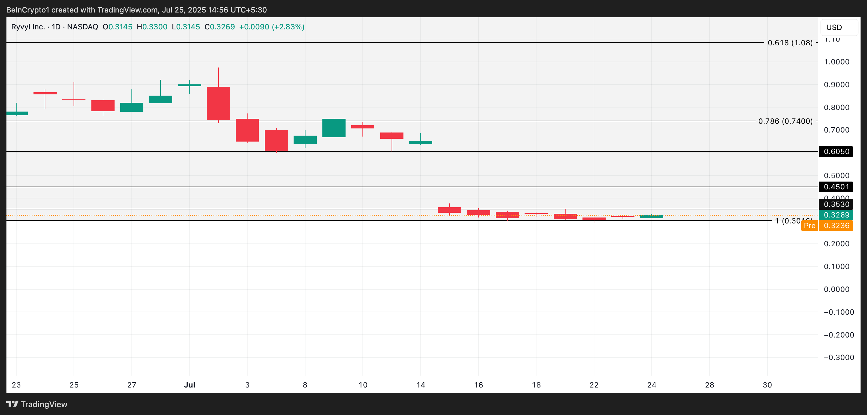 Men om trenden avtar kan RVYL sjunka till 0,30 USD—en viktig kortsiktig stödnivå.