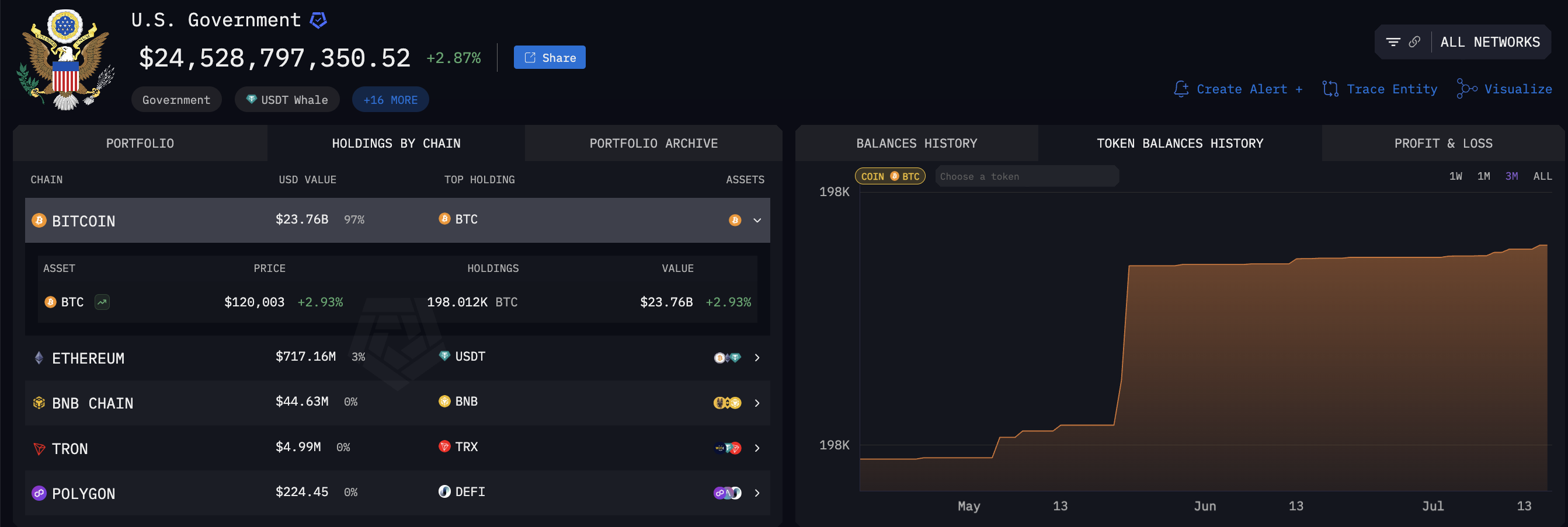 För att vara tydlig verkar katastrofscenariot inte särskilt sannolikt. Arkham Intelligence, ett företag för kedjeanalys, håller register över den amerikanska regeringens Bitcoin-innehav.