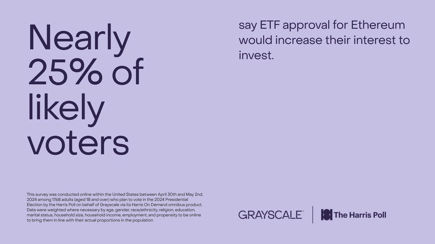 En undersökning av Grayscale och The Harris Poll visar att US Securities and Exchange Commission (SEC) godkännande av en spot Ethereum (ETH) börshandlade fonder (ETF) sannolikt skulle öka amerikanska investeringar i den digitala tillgången.