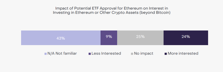 Undersökningen visar att nästan en av fyra troliga väljare skulle överväga att investera i Ethereum om en ETF-baserad produkt godkändes. Detta godkännande skulle öka deras intresse för Ethereum och andra kryptotillgångar utöver Bitcoin.