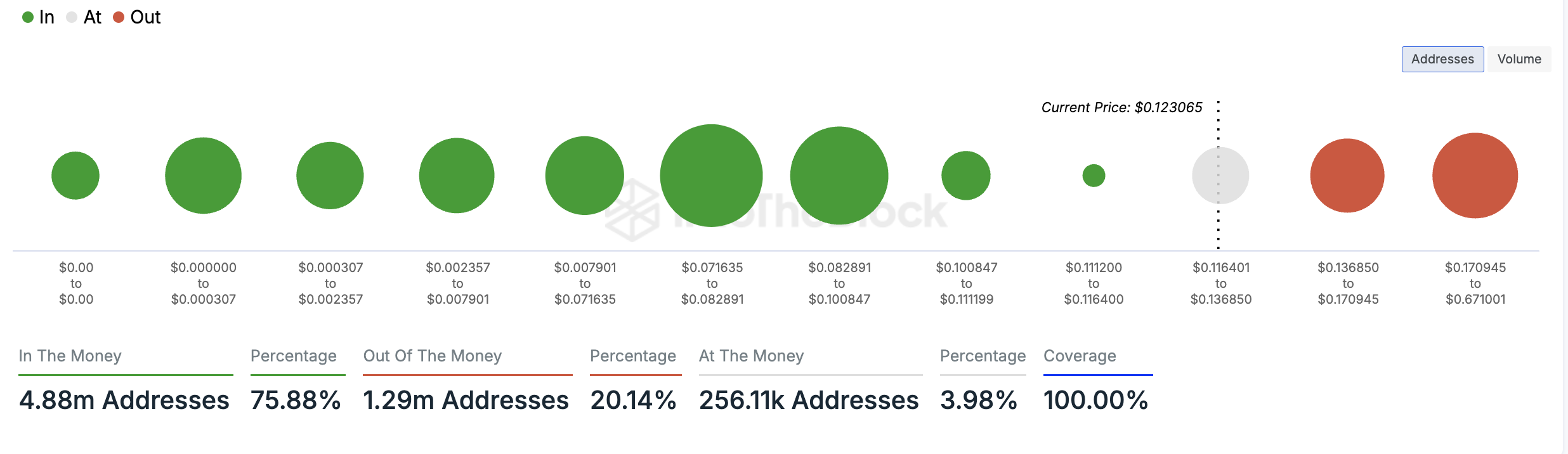 Utöver DOGE:s prisrally, kan faktumet att de flesta av dess innehavare är i vinst vara en annan anledning till att dess valar fortsätter att fylla sina påsar. En bedömning av DOGE:s Global In/Out of the Money visar att 76% av alla meme-myntinnehavare är i vinst. Tvärtom är endast 20% av totala myntinnehavare i förlust.