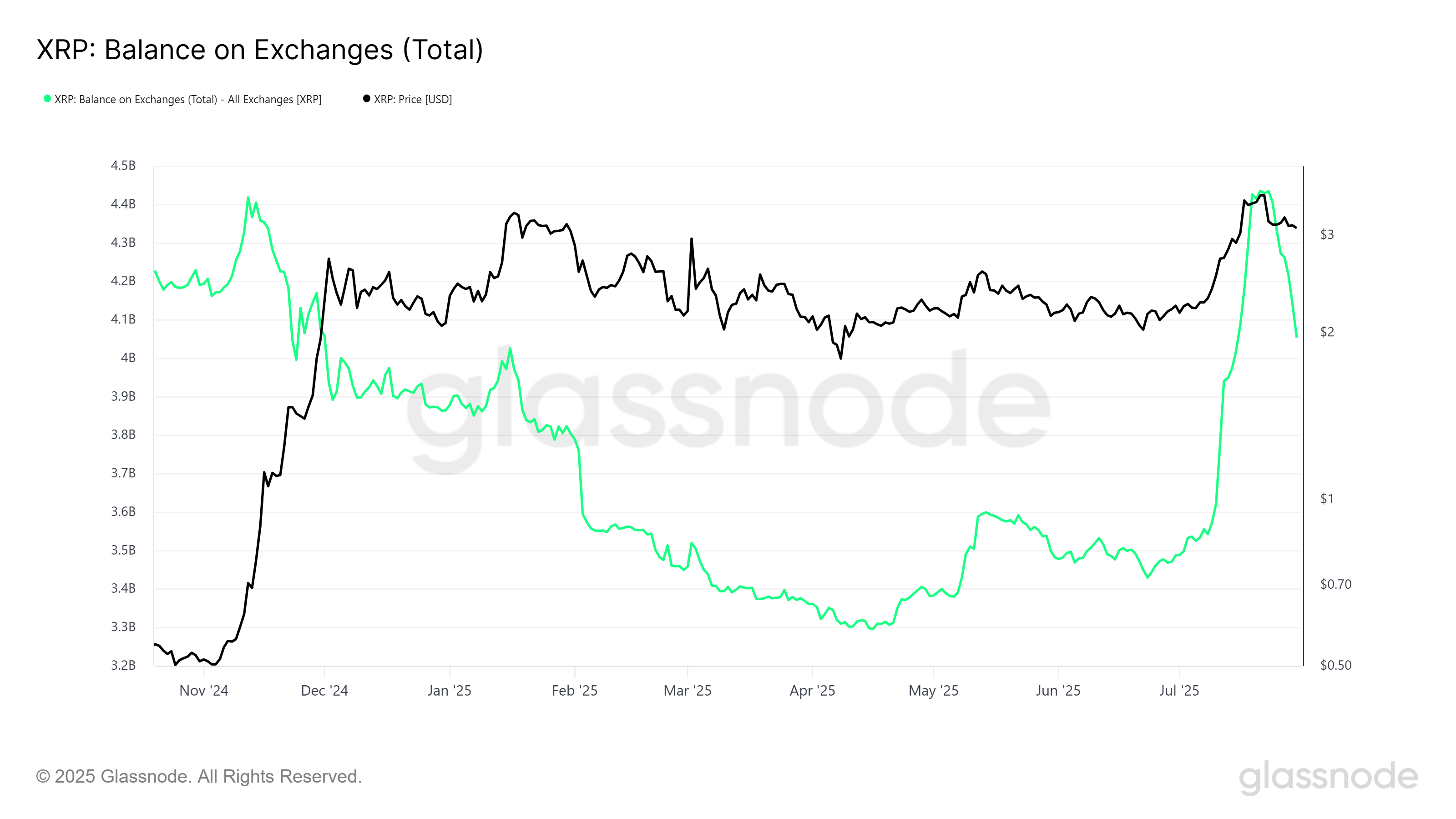 Senaste marknadsaktiviteten för XRP visar en dramatisk förändring i investerarnas känsla. Under två och en halv vecka såldes nästan 946 miljoner XRP, värda över 2,86 miljarder USD, till börser. Detta signalerar en betydande mängd vinsttagande och skickade utbudet till en åttamånaders högsta nivå. Men Alexis Sirkia, kapten på Yellow Network, berättade för BeInCrypto att denna försäljningsvåg var kortvarig.
