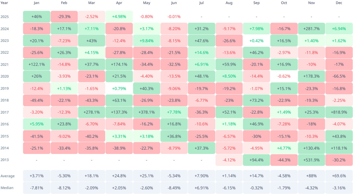 Trots detta har XRP historiskt sett haft en positiv juli när det gäller månatliga avkastningar. Den genomsnittliga månatliga avkastningen för den kommande månaden för XRP ligger på 6,91 %. En liknande ökning i juli 2025 skulle driva XRP förbi motståndet på 2,23 USD för att nå 2,32 USD.