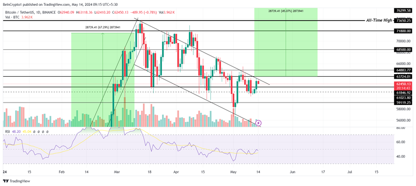 Misslyckade försök kan dock påverka investerarnas förtroende och potentiellt skicka BTC till $ 61,000 XNUMX eller lägre.