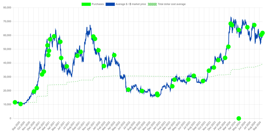Samma dag avslöjade MicroStrategy att de hade köpt ytterligare 7 420 Bitcoin för cirka 458,2 miljoner USD till ett genomsnittspris på 61 750 USD per BTC. Detta köp visar ytterligare bolagets aggressiva strategi för att förvärva Bitcoin, vilket har gjort dem till en av de största företagsinnehavarna av BTC. Vid tidpunkten för skrivandet visar data från SaylorTracker att företaget innehar 252 220 BTC, värda ungefär 15,99 miljarder USD.