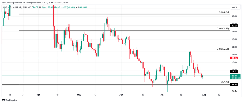 Men om man misslyckas med att bryta det kommer det att fortsätta den konsolidering som AVAX står inför och hålla sig över stödet på $24,43. Att förlora detta stöd skulle ogiltigförklara den hausseartade tesen.