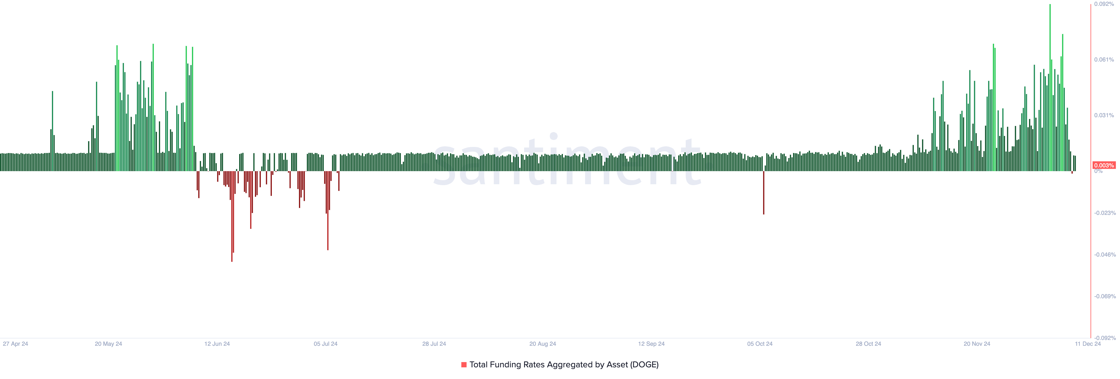 DOGE:s positiva finansieringsränta på kryptovalutabörser bekräftar denna positiva utsikt. Meme-valutans finansieringsränta är 0,003 % vid denna tidpunkt.