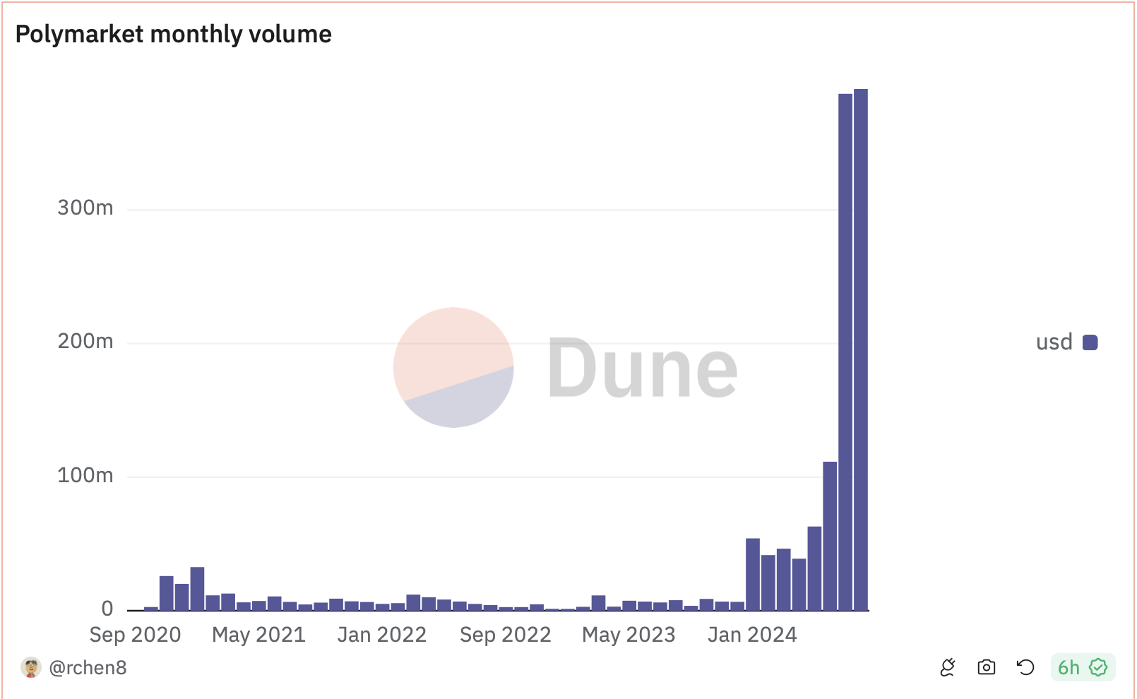 Under denna våg av aktivitet rapporterar Dune Analytics att Polymarkets månatliga handelsvolym steg till över 390 miljoner USD i augusti, vilket översteg juli månads 387 miljoner USD. Plattformen nådde också ett rekordantal månatliga aktiva handlare, med 53 981 användare, upp från 44 523 föregående månad.