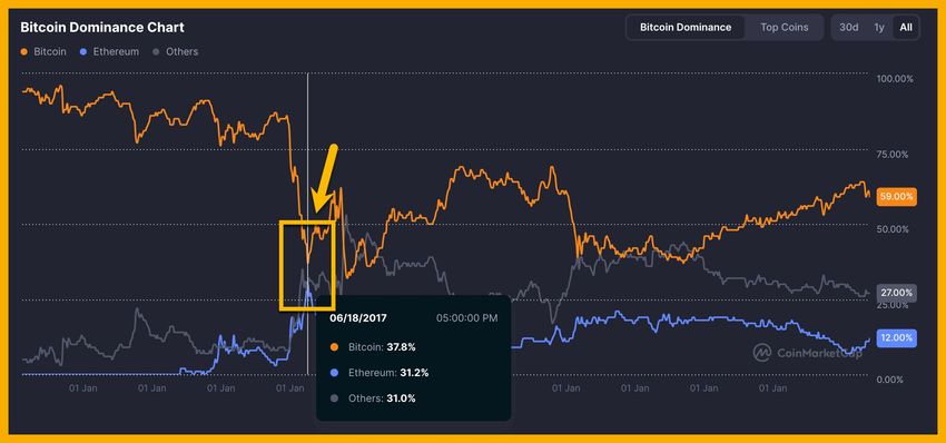 Ett populärt inlägg påminner om ett ögonblick när ETH nästan matchade Bitcoins dominans: