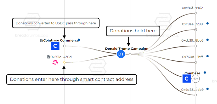 Enligt Breadcrumbs data samlade hans kampanj endast in cirka 59 000 dollar i kryptodonationer mellan 21 maj och 17 juni. Detta inkluderade spårbara tillgångar på Ethereum-, Polygon- och Base-blockkedjorna.