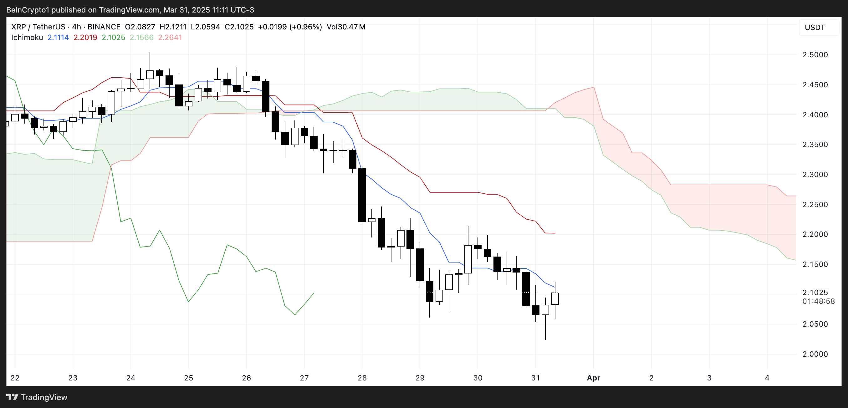 XRP Ichimoku Cloud visar ett baisse-scenario