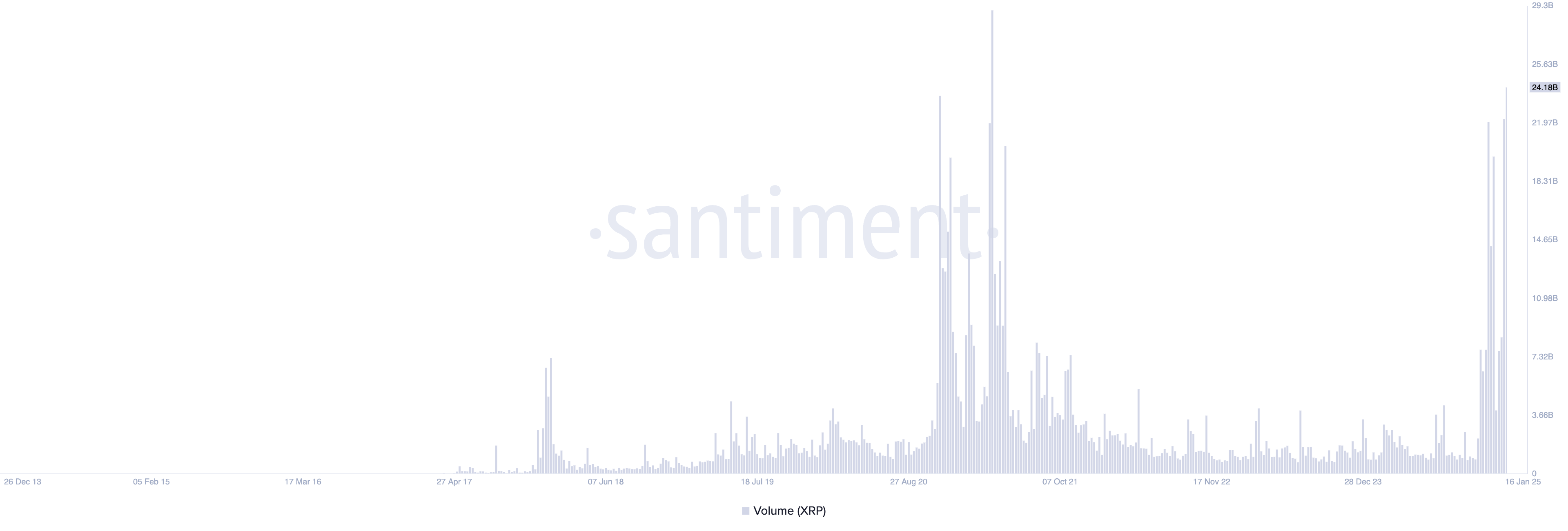 På denna nyhet steg XRP:s pris till en rekordhög nivå på 3,40 USD under torsdagens handelssession. Med betydande handelsaktivitet pågår fortfarande, har handelsvolymen uppgått till 24 miljarder USD de senaste 24 timmarna, den högsta sedan april 2021.
