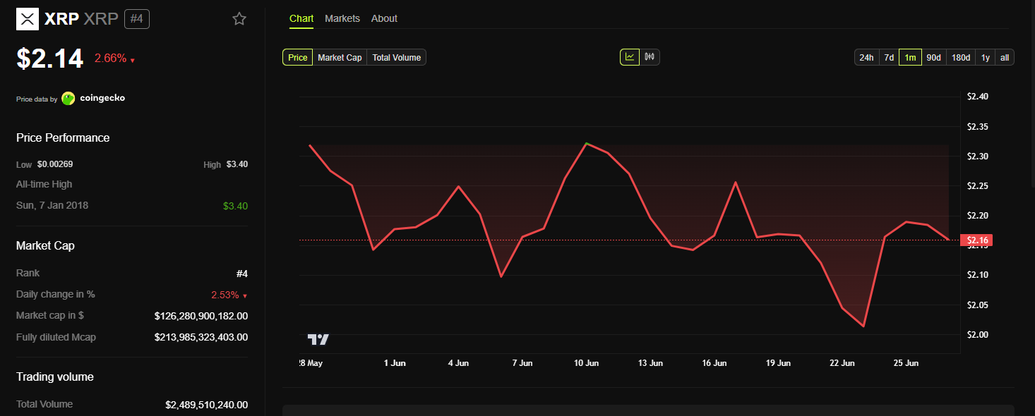 CoinGeckos analys undersökte vad det kostar att handla XRP inom en liten prisrörelse på två cent, vilket motsvarar cirka 1 % av dess pris.