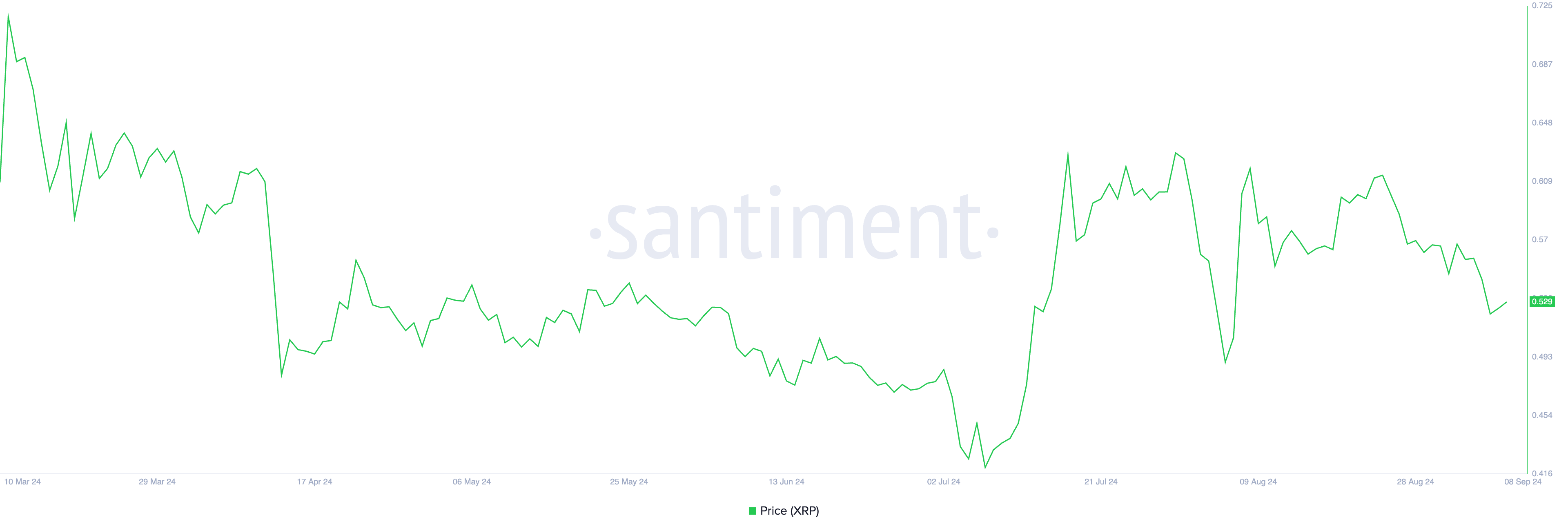 Trots denna trend har XRP:s pris fortsatt att sjunka, vilket går emot de vanliga förväntningarna på en prisökning under sådana förhållanden.
