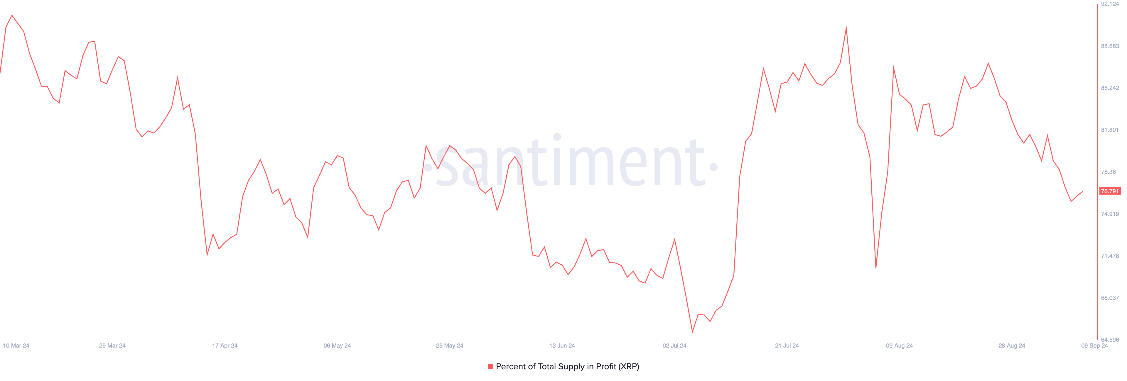 Den 11 mars var 91,21% av XRP:s tillgång i vinst. Men när tokenens pris föll, sjönk denna procent till ett 16-månaders låg på 67,38% den 4 juli.