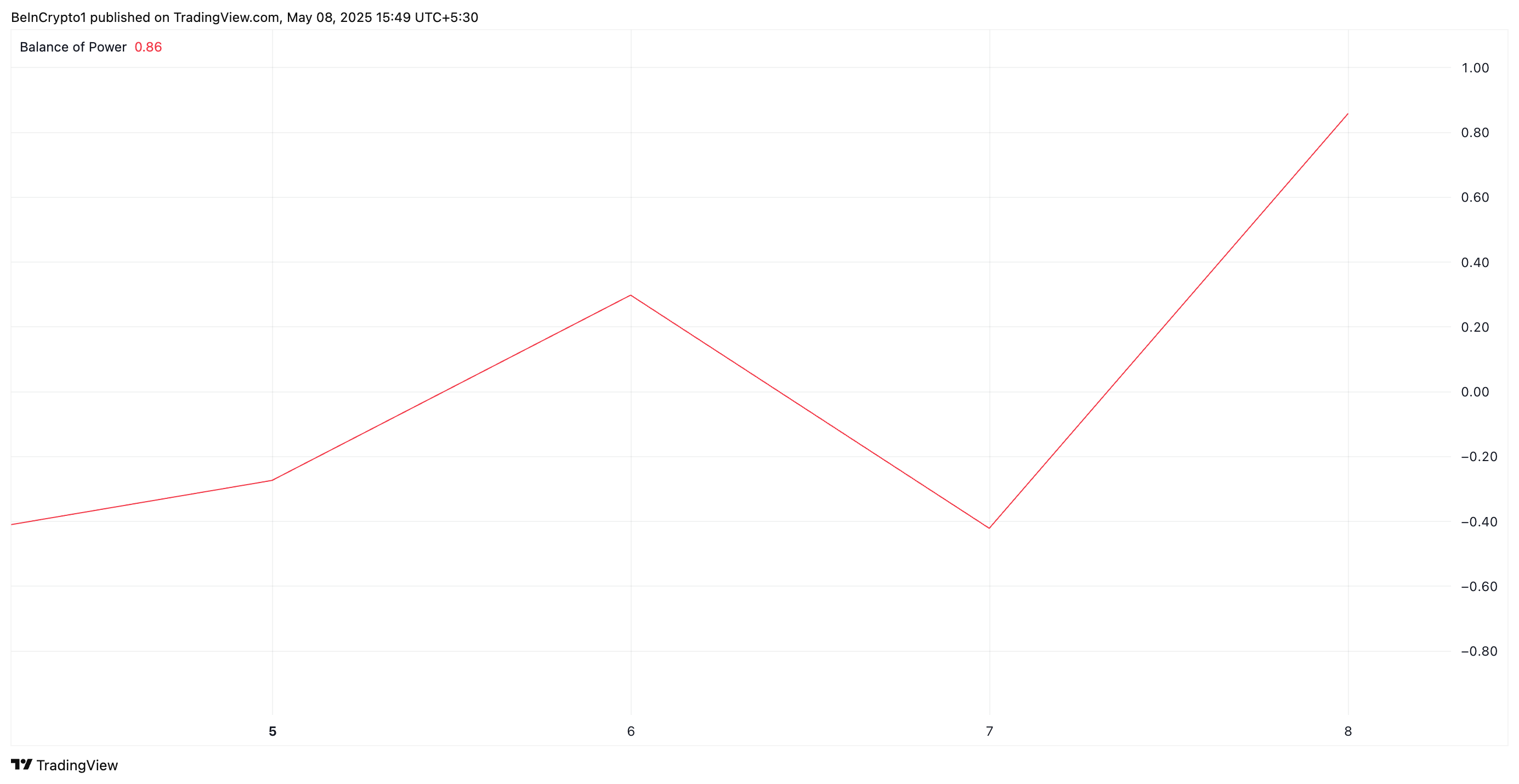 Likaså visar XRP:s Balance of Power (BoP) ett positivt värde för närvarande, vilket betonar den positiva inställningen till altcoinet. Det står nu på 0,86.