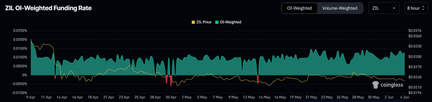 Positiva räntor innebär att långa kontrakt dominerar marknaden, medan negativa finansieringsräntor tyder på att korta kontrakt dominerar. Det senare antyder att investerare förväntar sig en prisnedgång, vilket inte är sant med ZIL.