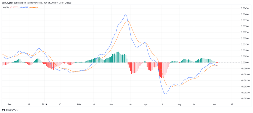 Den bredare marknaden verkar dock inte hålla med investerarna, vilket indikeras av Moving Average Convergence Divergence (MACD). MACD är en trendföljande momentumindikator som visar förhållandet mellan två glidande medelvärden av en tillgångs pris, vilket hjälper till att identifiera potentiella köp- och säljsignaler.