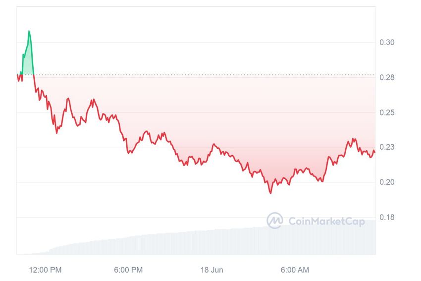 ZK-priset började handlas den 17 juni och öppnade på $0,289. Den lyckades stiga något och nådde en rekordnivå på $0,309. Nedgången som började direkt efter fortsätter dock fortfarande, med ZK för närvarande nere med 22%.